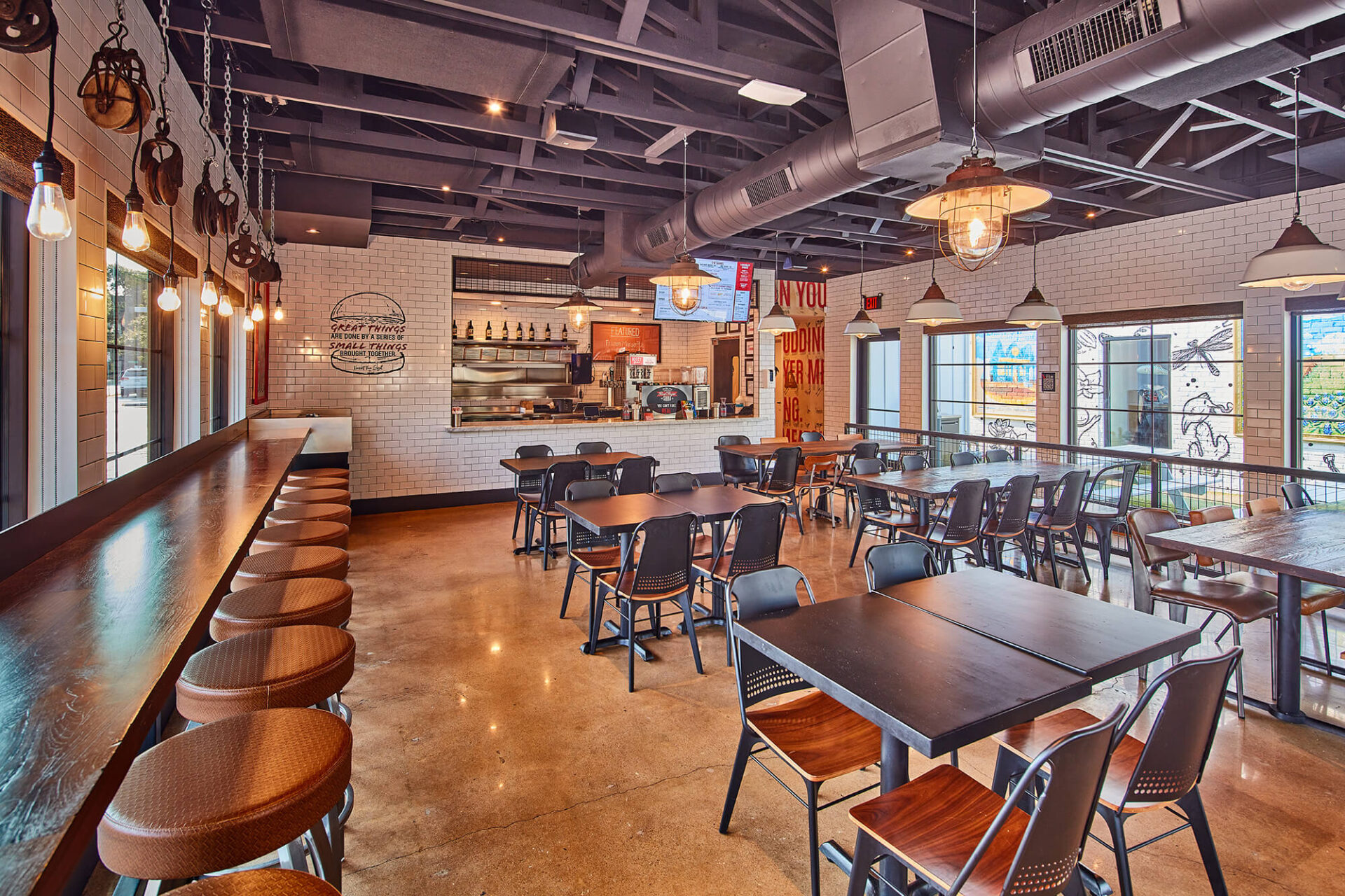 Quirky, retro, and rooted in American nostalgia, the exterior architecture retains its signature three peaks and familiar footprint while layering in surprising details that make every visit a little more memorable. From architectural moments to irreverent touchpoints, Son of a Butcher proves that attitude and approachability can coexist in one cohesive, crave-worthy concept.