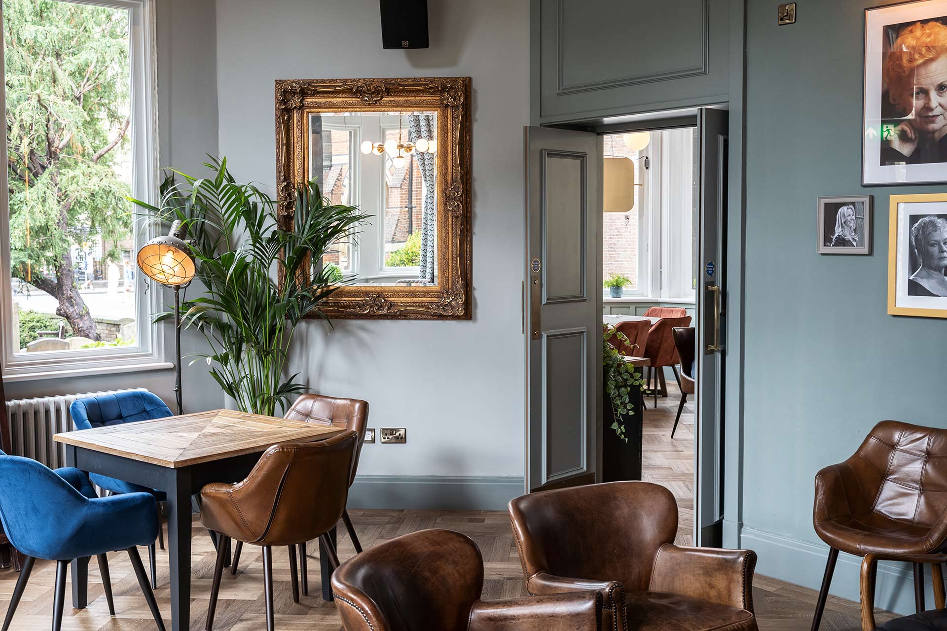 Inside, the interior shifts from the gravitas of heritage to moments of lightness and character. Rich woods, deep blues, aged metals, and bespoke artwork mix seamlessly to create an atmosphere that feels timeless yet refreshingly alive. Wayfinding was a key part of this; how do we navigate guests through the experience? Using intelligent visual cues and layered messaging, we ensured that guests are gently guided — not just through the venue, but through its story.