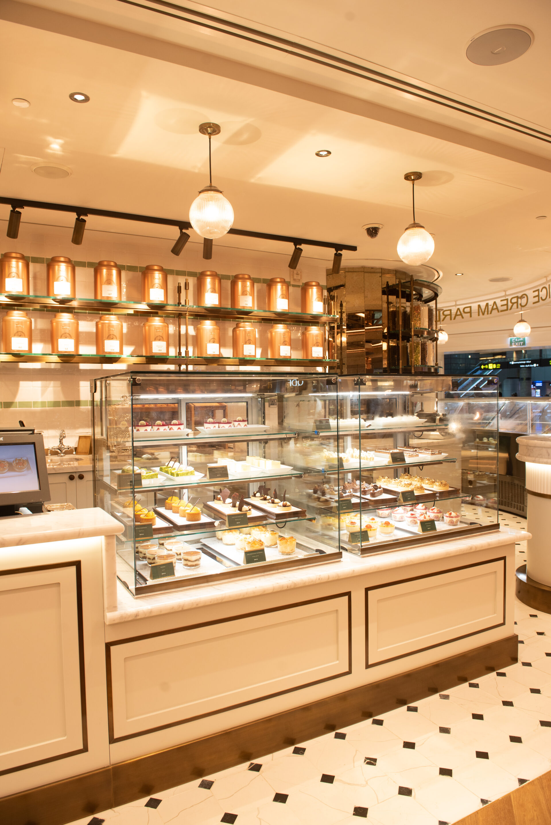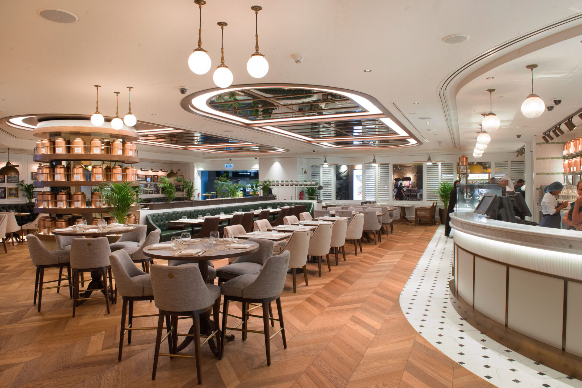 At Harrods' Tea Room in Hamad International Airport, Harrison translated a British iconic concept for a global audience. Tasked with translating the elegance of Harrods' Knightsbridge heritage into a contemporary airport setting, we crafted a space that balances tradition with modernity. The design features subtle Art Deco influences, with bespoke detailing and a muted palette that evoke understated luxury.