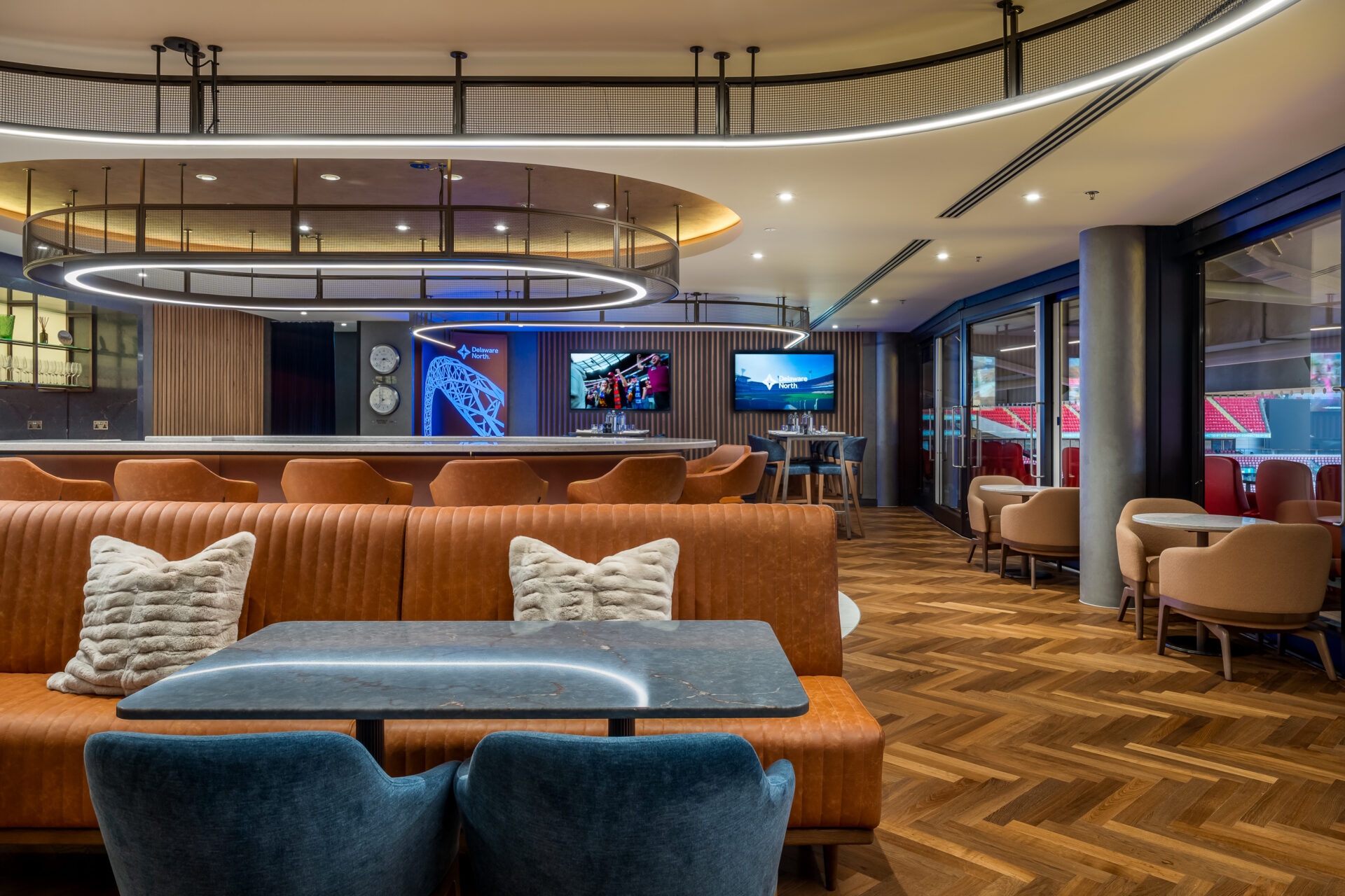 This space had to perform across every occasion. Behind the scenes, every material and detail was engineered to meet the stadium’s rigorous safety and operational demands balancing compliance with a premium, hospitality-led aesthetic.